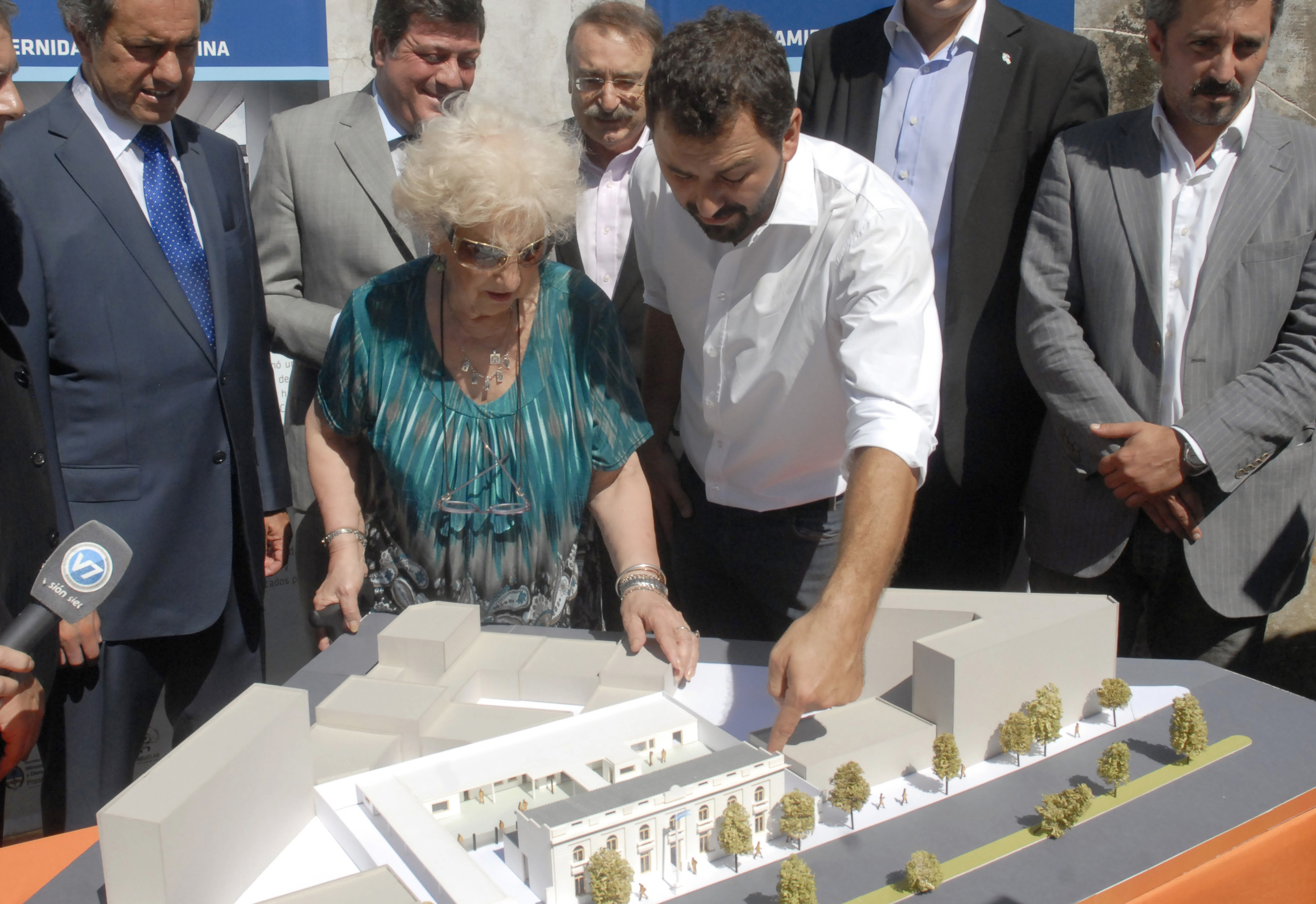 La abuela y el nieto, acababan de comenzar un recorrido por lo que fue un campo de exterminio durante su apertura como sitio de reflexión, encuentro y memoria. Los acompañaban al secretario de Derechos Humanos de la Nación, Martín Fresneda; su par de Provincia Guido Carlotto; el director de Formación de la Secretaría de Nación, Matías Moreno; el gobernador de la Provincia, Daniel Scioli; el diputado nacional del FPV y nieto recuperado, Horacio Pietragalla; HIJOS, otros nietos, y representantes de organismos de Derechos Humanos.