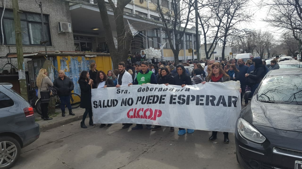 Pacientes, médicos y trabajadores del centro de salud se reunieron frente al edificio para denunciar la situación general de la salud pública y reclamarle a la gobernadora María Eugenia Vidal inversiones en infraestructura y mantenimiento (el hospital sufrió tres incendios en las últimas dos semanas) y por aumento de salarios para los profesionales.