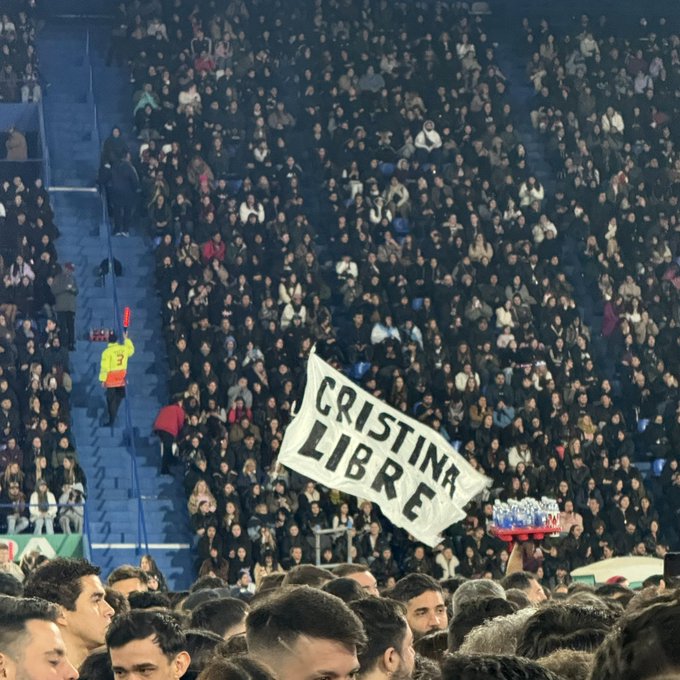 A su vez, desde las pantallas difundió un mensaje de concientización sobre la persecución y violencia que viven las minorías y disidencias en nuestro país: “102 crímenes de odio en 8 meses”. En el medio se vio una bandera con una consigna que tampoco es indiferente a la juventud: “Cristina libre”.