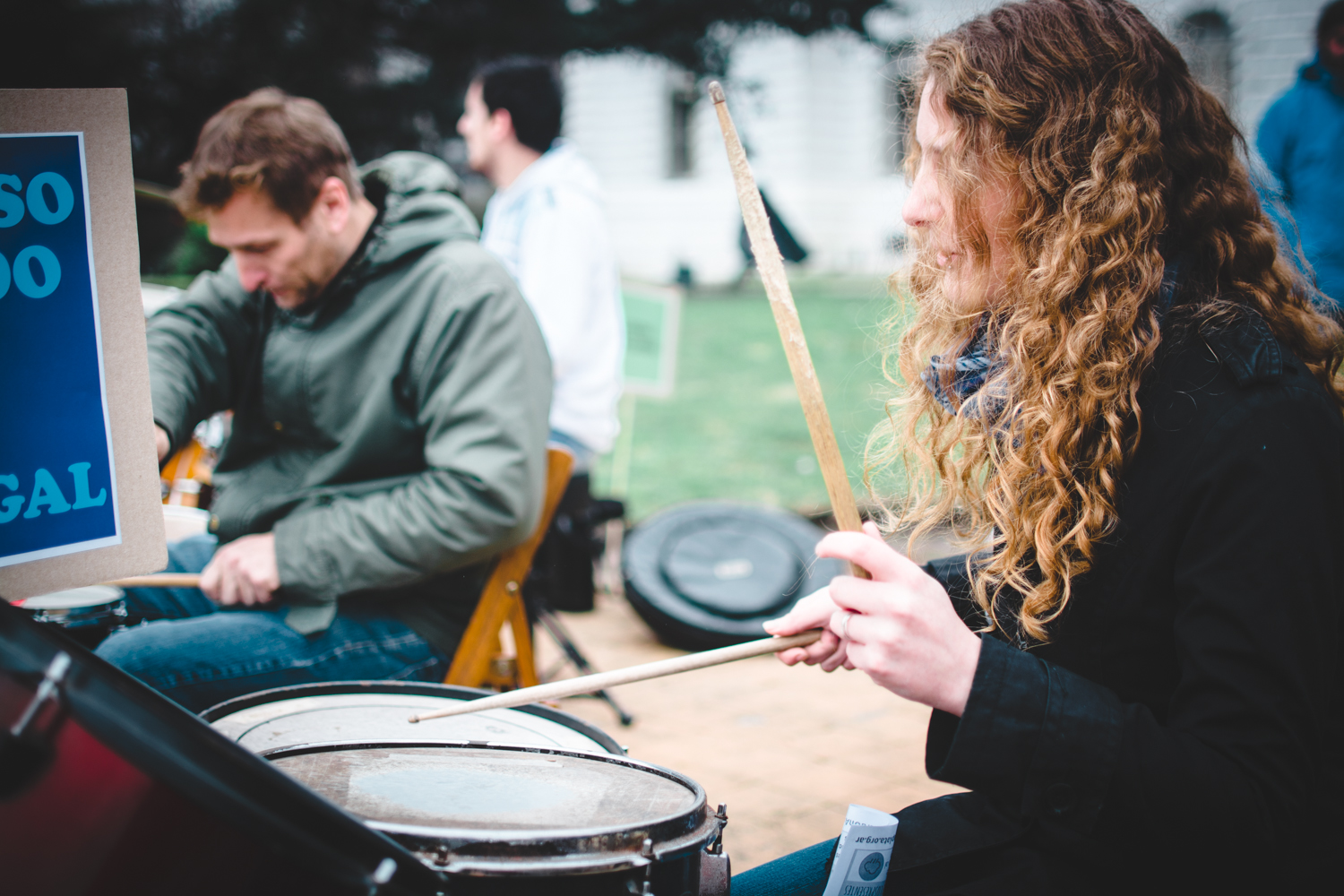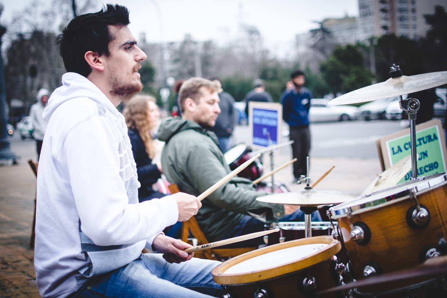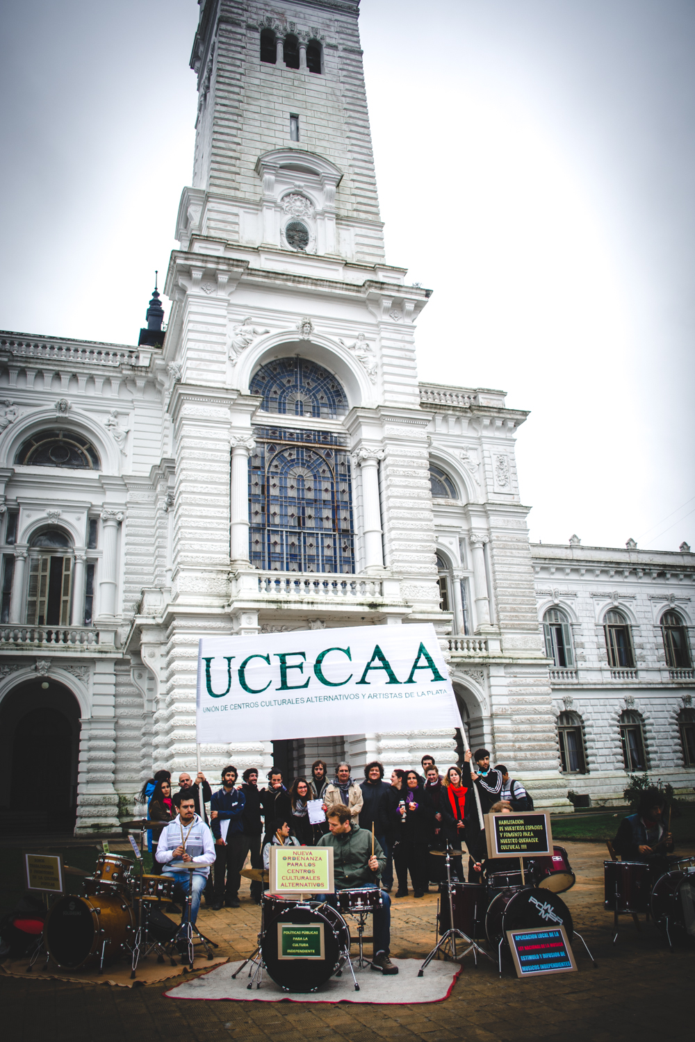 El evento fue organizado desde el seno de la Unión de Centros Culturales, Alternativos y Artistas de La Plata, UCECAA, que invitó a músicos con sus respectivos instrumentos, en este caso baterías, a sumarse al reclamo por una nueva normativa, como la que ya ha sido propuesta por los concejales de la bancada del bloque del Frente para la Victoria Nacional y Popular.