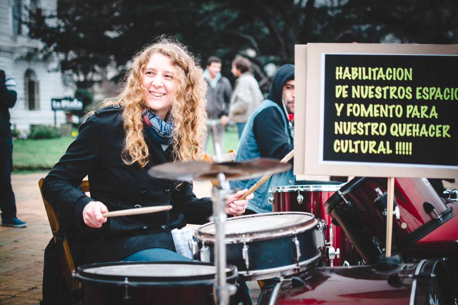 Luego de la suspensión del evento por razones climáticas, distintos representantes de centros culturales, artistas y vecinos de La Plata realizaron un “baterazo” para reclamar en forma conjunta por una legislación nueva que los contemple como espacios alternativos de difusión.