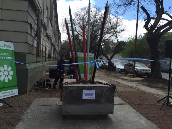 “’Detrás de cada reclamo, hay una injusticia’, dijo Evita, y así lo entendieron los compañeros que hoy recordamos con este monumento. Ellos pelearon por el boleto, sin armas, con los lápices que hoy siguen escribiendo. Cada vez que pasen por esta esquina, recuerden que acá hay un monumento que simboliza la vida, el amor y la lucha”, dijo este viernes al mediodía Agustín Cerdá, vicepresidente del centro de estudiantes del colegio industrial Albert Thomas de La Plata.