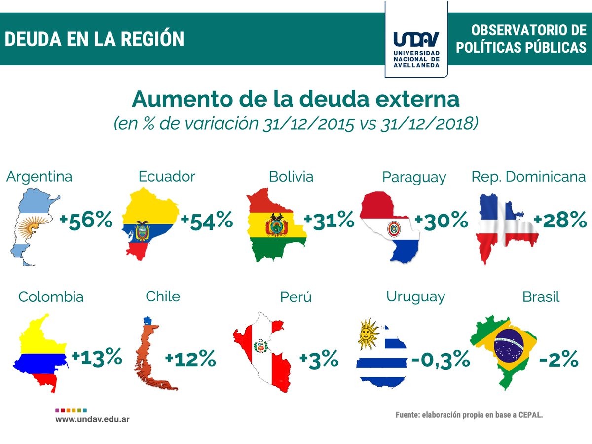 “En estos tres años se tomó más deuda que en los ocho años anteriores”, asegura el informe elaborado por el Observatorio de Políticas Públicas de la Universidad Nacional de Avellaneda (UNDAV), en base a datos de la Comisión Económica para América Latina y el Caribe (CEPAL).
