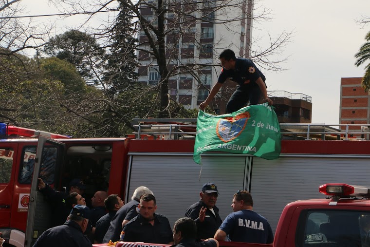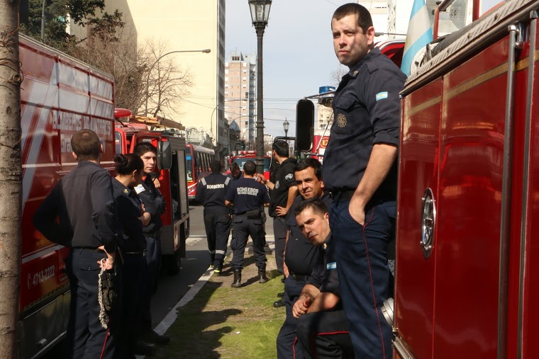 Decenas de bomberos de la provincia de Buenos Aires se trasladaron en sus autobombas hacia el palacio de la Legislatura provincial donde se discutió el proyecto de ley para la creación del “Fondo Para el Financiamiento Operativo de los Bomberos de la Provincia de Buenos Aires”.