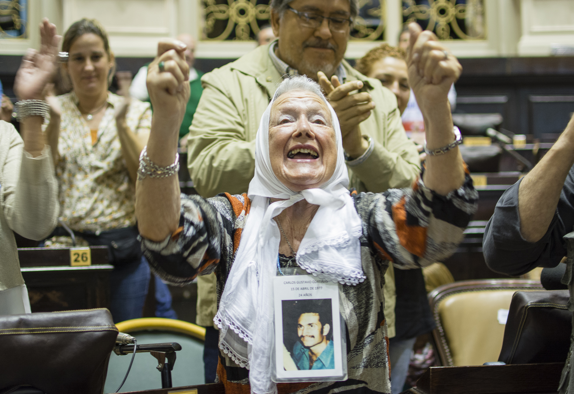 El recinto, colmado de militantes de organizaciones que luchan por los derechos humanos, aplaudió la labor y las palabras de Rozanski. Entre el bullicio de aplausos, Nora Cortiñas, Madre de Plaza de Mayo, levantó la voz de lucha: “Es un hijo nuestro más”.