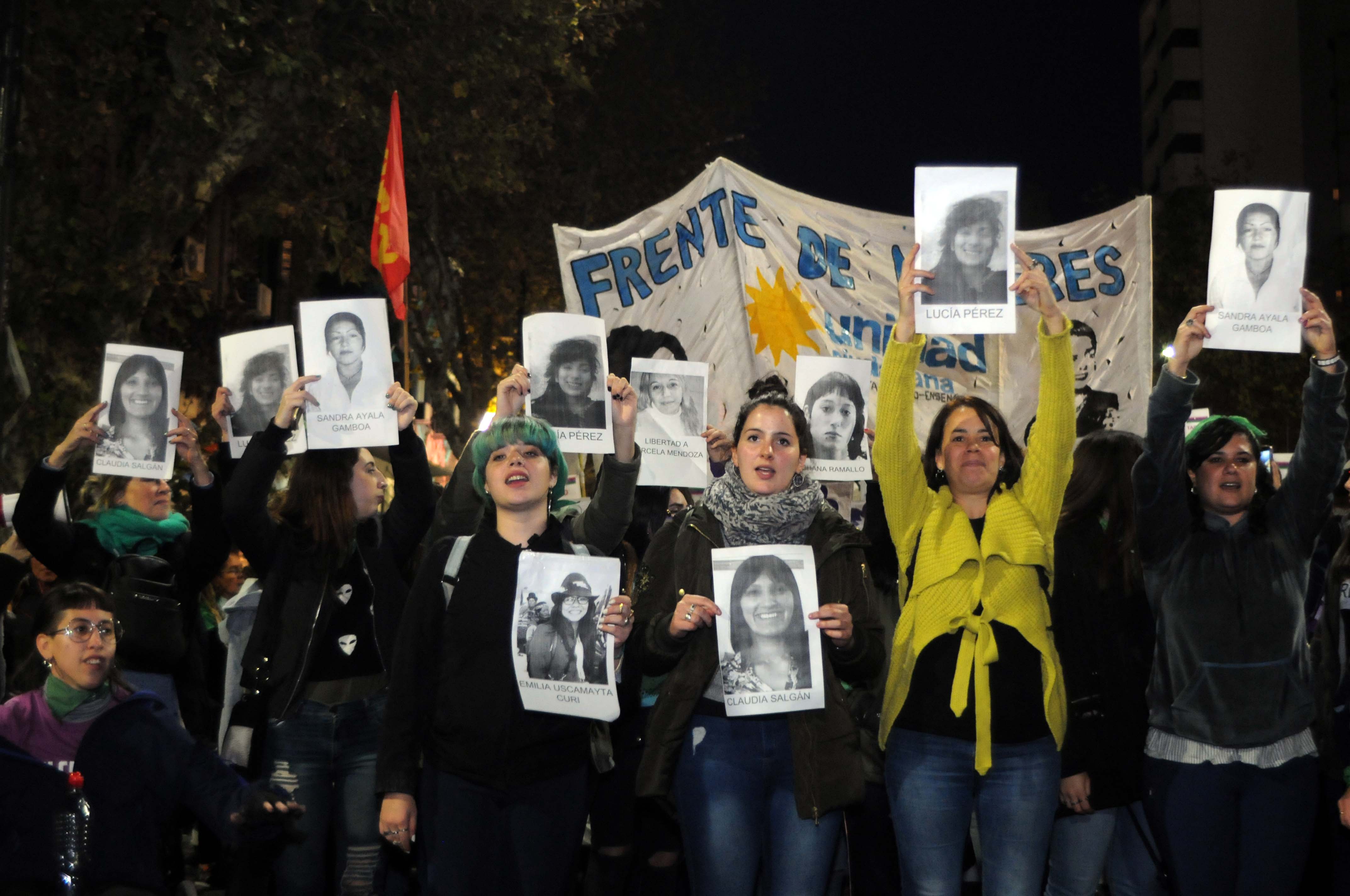 «¡Lore, escuchá, tu lucha es nuestra lucha!», corea el público, brindándole su apoyo. Pide justicia y rompe en llanto. Agradece a su familia y a quienes están presentes. A su lado se encuentra la mamá de Claudia Salgán, cuyo discurso emociona a más de uno. Allí se juntan los pasacalles y las banderas de asta de caña de las distintas agrupaciones y organizaciones sociales, micrófonos y megáfonos.