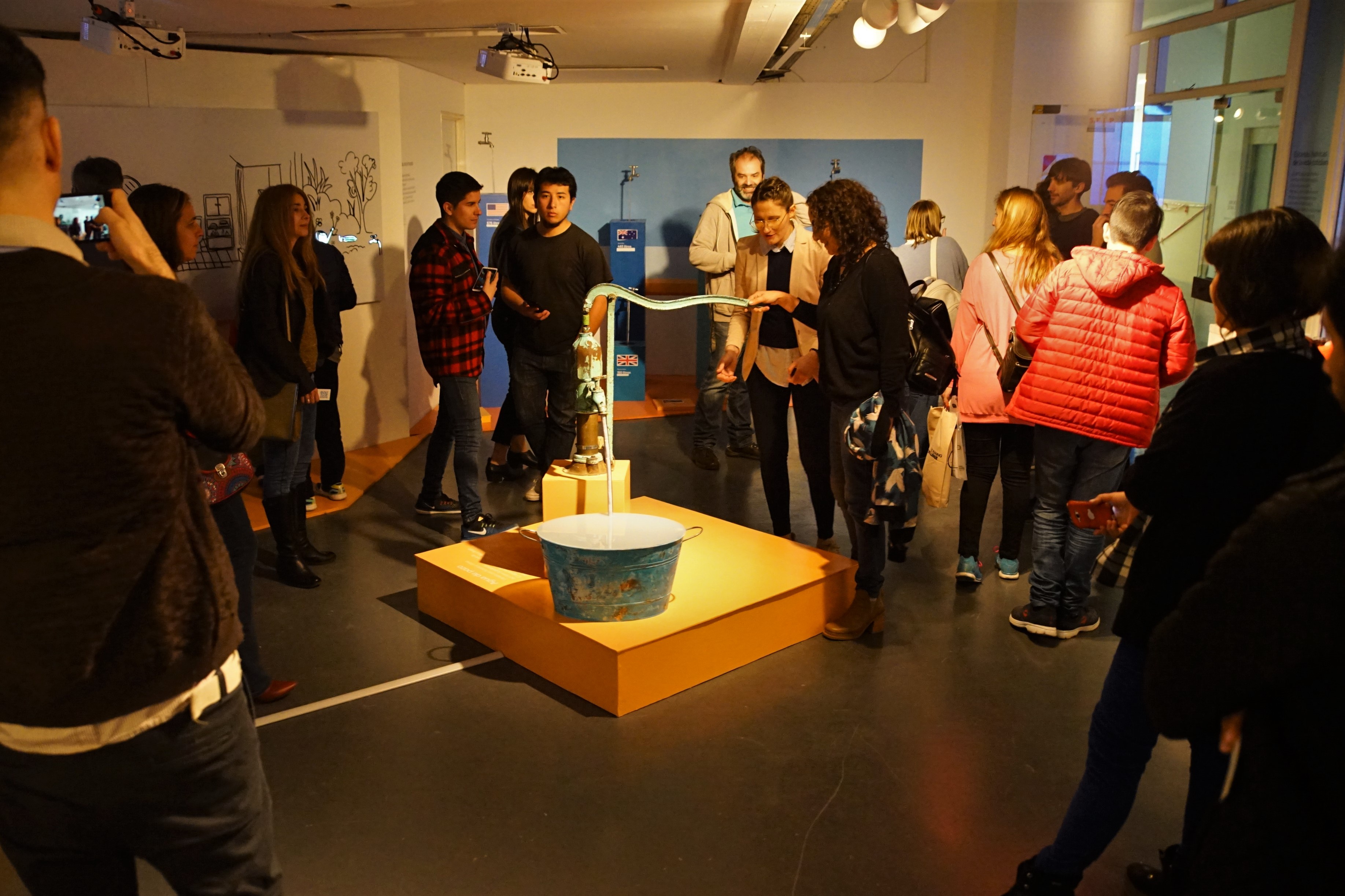 El diseño de la muestra y las experiencias estuvo a cargo de Andrea Sosa, egresada de Artes Audiovisuales y de Multimedia, mientras que María Laura Musso fue la responsable de lo escenográfico. Investigaron el tema y los criterios museológicos, entre ellos el rol del público: «No es la suma de experiencias. Es una muestra que piensa completamente su contenido», define Mariel Ciafardo, directora del Centro de Arte y Cultura. «Se convocó a escenógrafos, pintores, escultores, diseñadores industriales, diseñadores en comunicación visual, diseñadores multimediales, músicos, especialistas en acústica». Y agrega: «Tampoco es una feria de ciencia, que tal vez era la parte que más nos costaba que comprendieran tanto los científicos como los artistas. Que no es la suma de cosas que cada quien piensa, sino que es una sola cosa que ya está diseñada, que tiene una lógica en su recorrido, y lo que se necesita es pensarla espacialmente y darle una forma estética. Porque lo que nos parece original de la muestra no es tanto en el tema –porque hay ya museos de agua en el mundo–, sino que realmente reúne el arte y la ciencia. El arte no está decorando un contenido científico, sino que ambas cosas aparecen con el mismo peso específico».