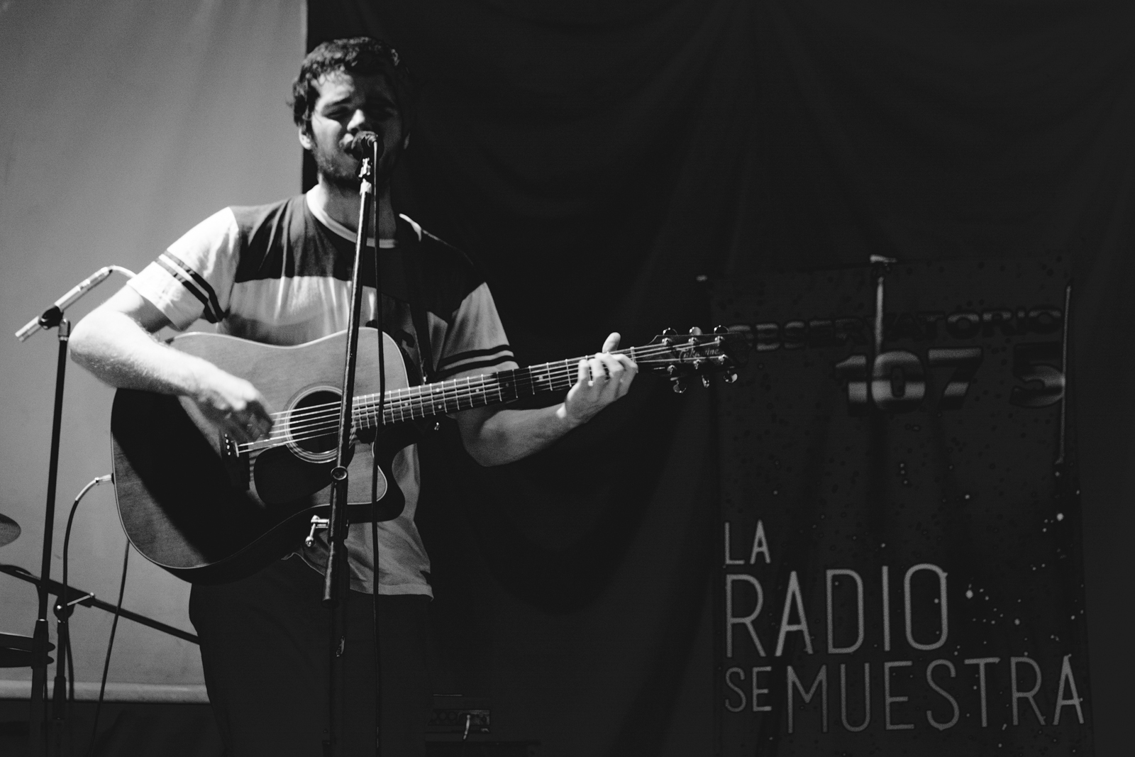 La sala Zoom del centro cultural estaba constantemente ocupada por los jóvenes que recorrían la muestra fotográfica “Invitados para la Foto”, de Ariel Valeri, en la que se exponía una serie de capturas que retratan personajes y escenas de la música platense. A metros de la entrada de la sala estaba el stand de discos, típico de los eventos de Radio Universidad, en el que podía encontrarse una amplia variedad de títulos grabados por bandas independientes de la ciudad.