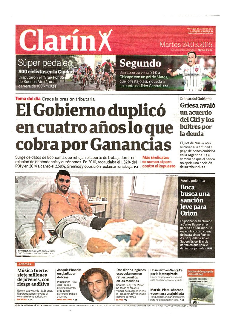 En todos, predomina una interpretación negativa de la jornada y se busca golpear al Gobierno Nacional, directa o indirectamente: “Marchas cruzadas por el 24: el Gobierno minimiza la posibilidad de incidentes”; “La 9 de Julio copada por micros para los actos en Plaza de Mayo”; “Bonafini: ‘Scioli apoyó la dictadura’»; y “Nora Cortiñas: ‘Un Milani en las Fuerzas Armadas es un retroceso’».