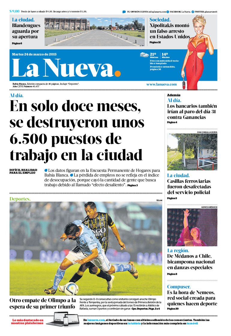El mismo silencio practicaron en sus primeras páginas Ámbito y La Nueva (ex La Nueva Provincia), de Bahía Blanca, que a pesar de cambiar el nombre no cambió su política editorial.