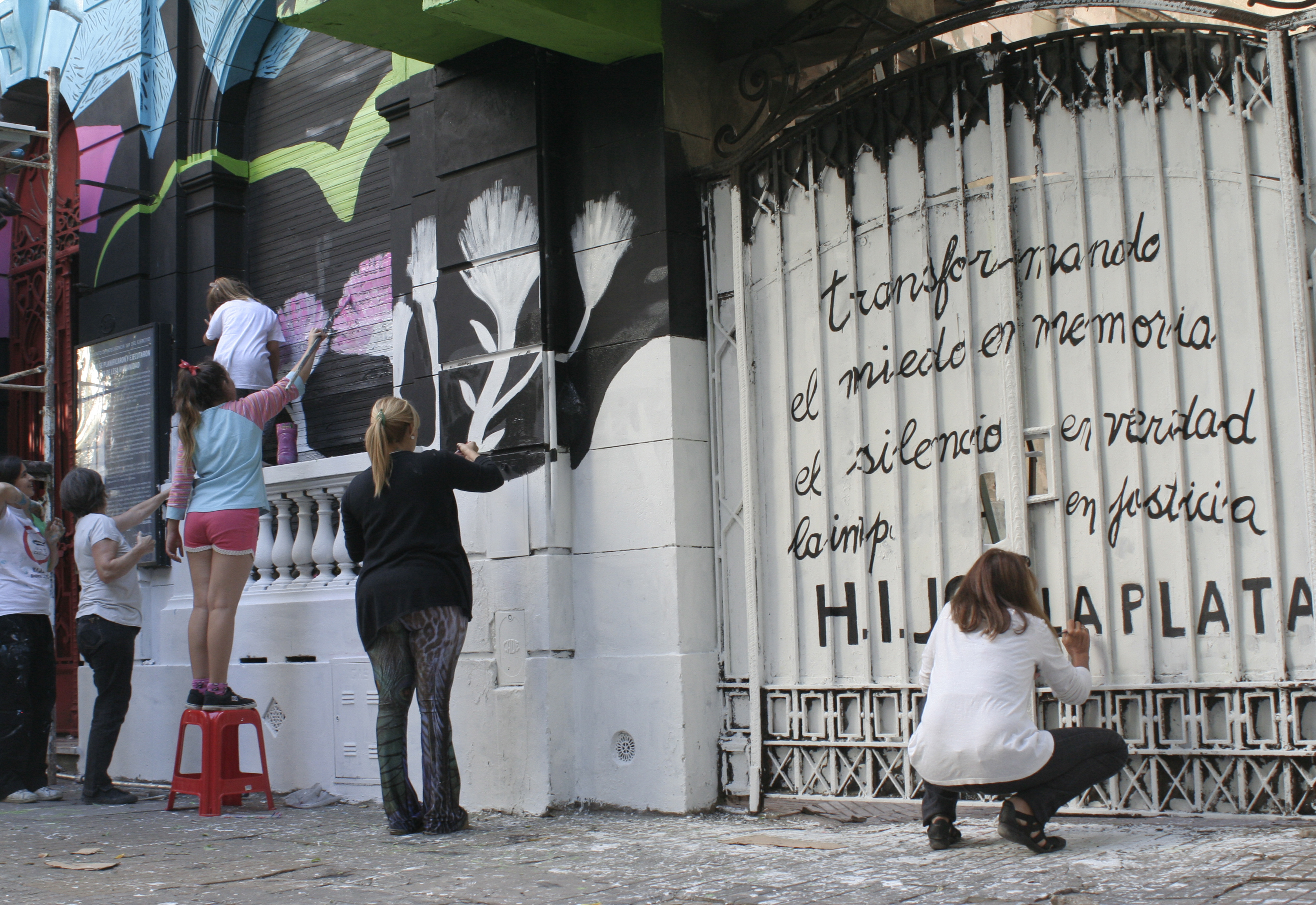 “La política de H.I.J.O.S siempre fue de tomar y apropiarse del espacio para resignificarlo. Ese es el sentido de este mural. Después vendrán los tiempos legales, porque nuestra intención es que este sitio se convierta en un espacio cultural de la memoria que se abra a toda la gente”, detalló Ana Laura Mercader, de la Agrupación.