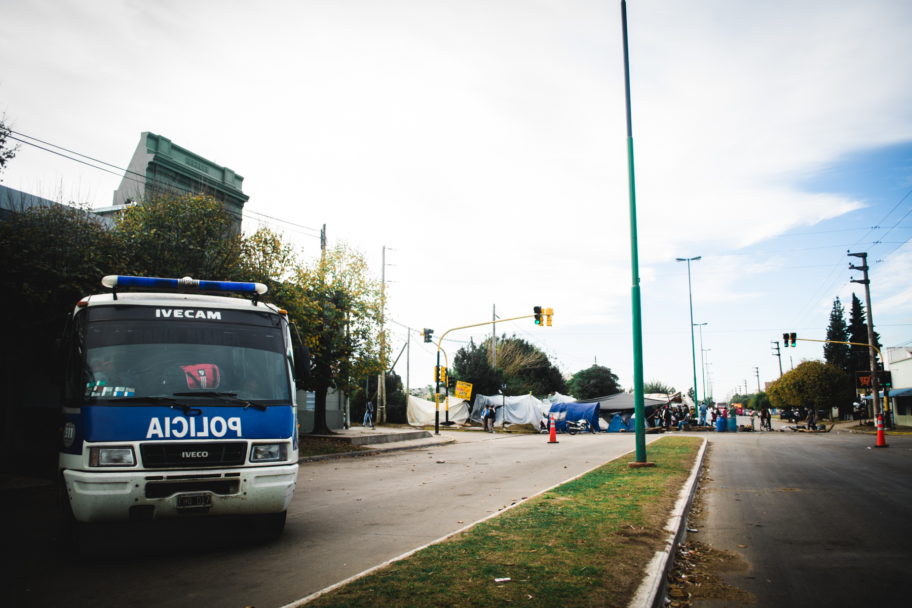 A cien metros, una camioneta de la Policía monta guardia en lo que ahora es la entrada al predio que un hombre está terminando de alambrar. Un efectivo asoma la cabeza por la ventana en señal de que está vigilando. Dice que no sabe si la fiscalía mandó a alambrar o lo hizo “el supuesto dueño” del terreno o vaya a saber quién. El hombre entierra los palos con fuerza, y ata ese alambre nuevo, brilloso, símbolo de propiedad privada, que debería ser suplantado por los ladrillos que esa gente merece.