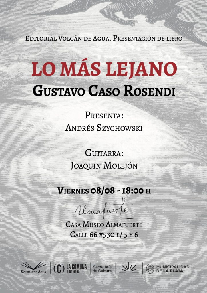 “Lo más lejano” (Editorial Volcán de Agua) será presentado este viernes 8 de agosto a las 18 en Casa Museo Almafuerte (66 e/5 y 6 Nº530) con moderación de Andrés Szychowski y Joaquin Molejón en guitarra